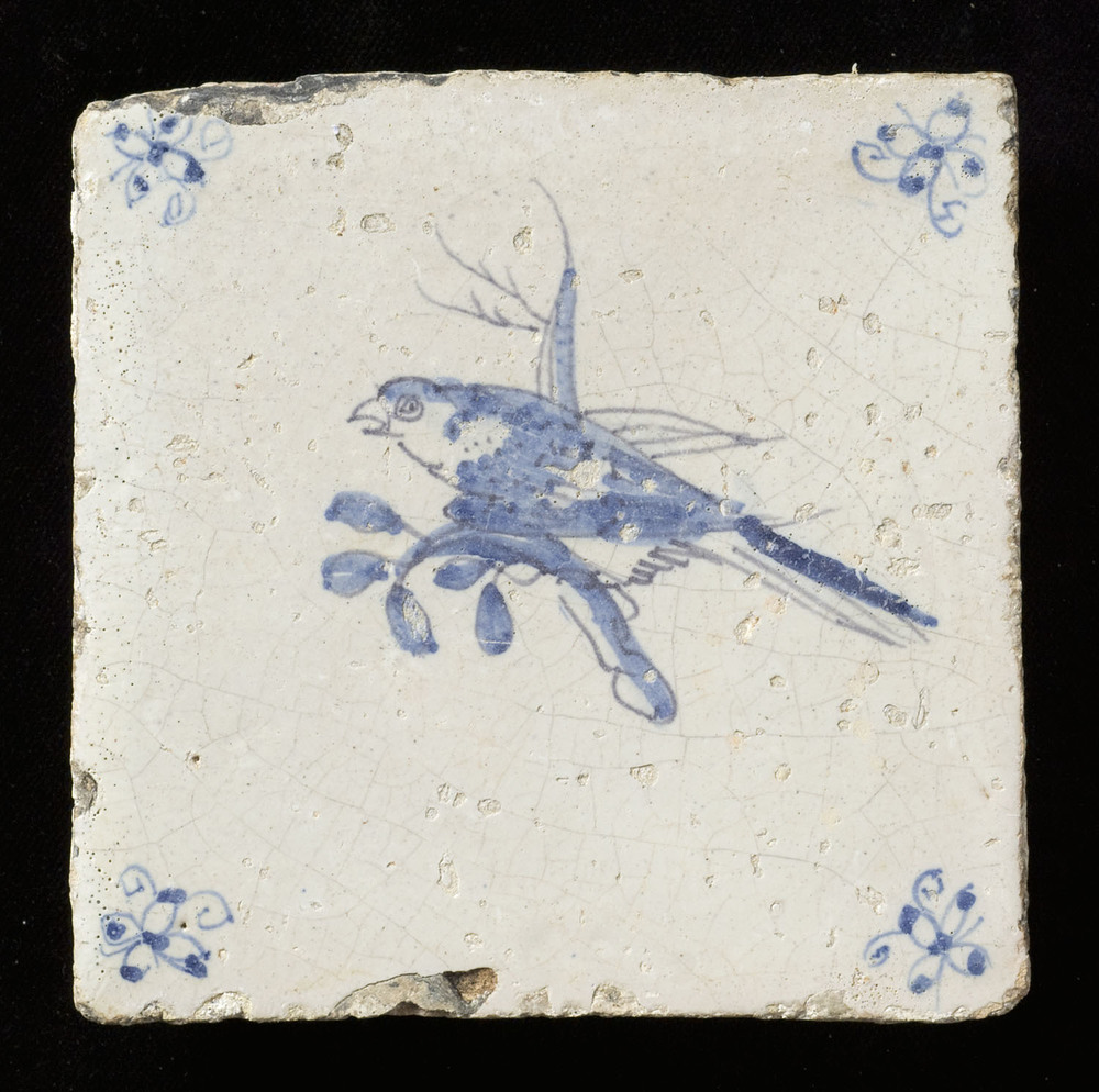 Tegel van keramiek, tinglazuur, voorstellende een vo...
