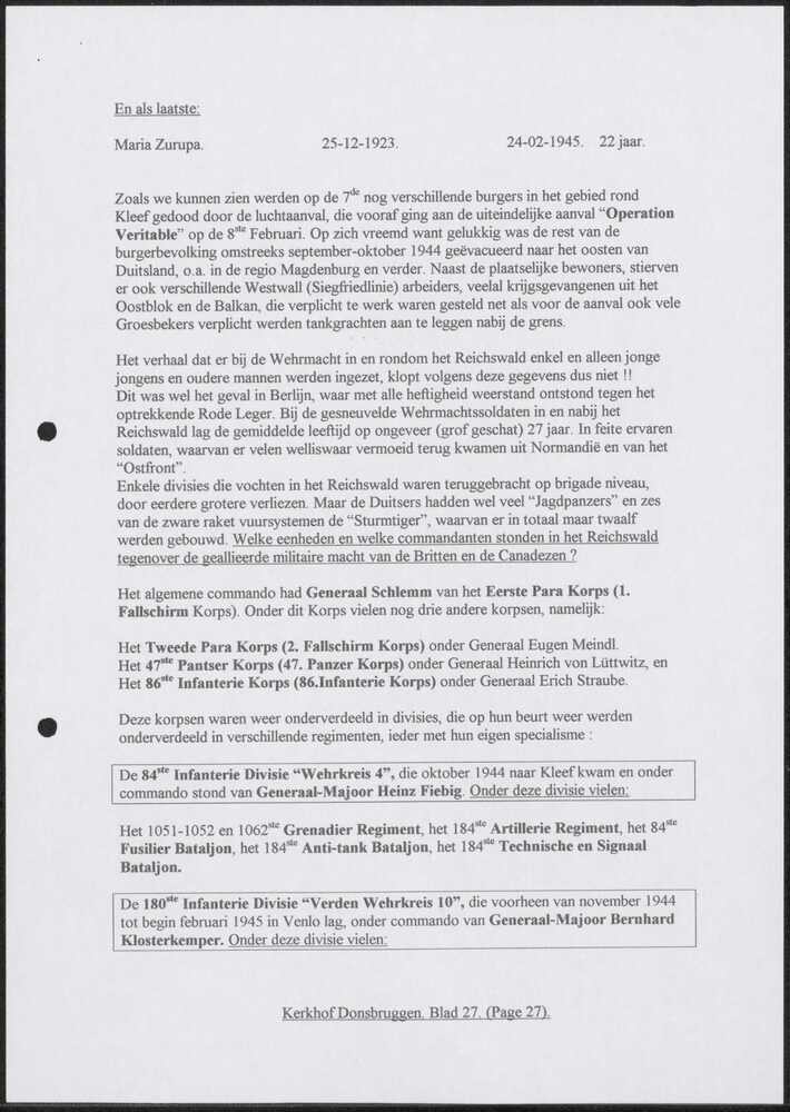 Rapport 26 april 1945 over Hoensbroek door J. Schellinx