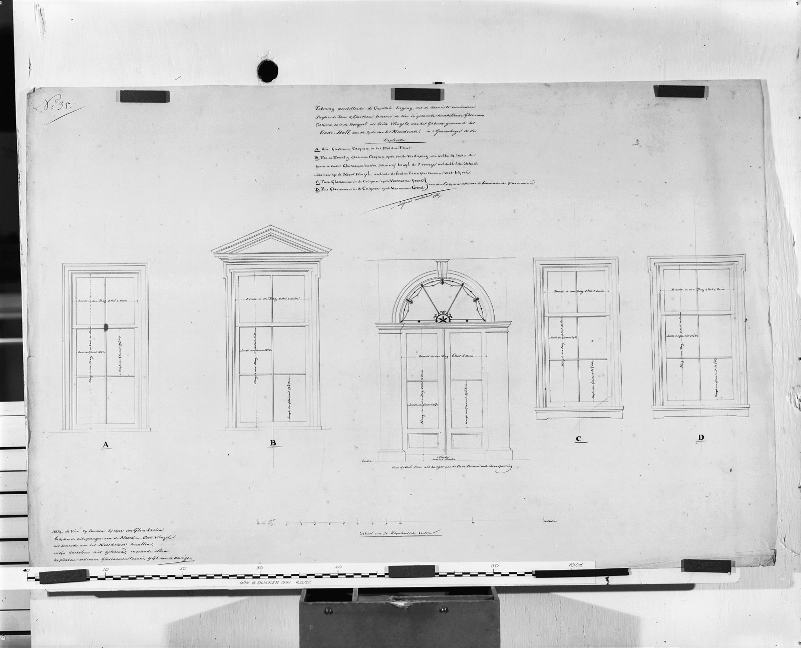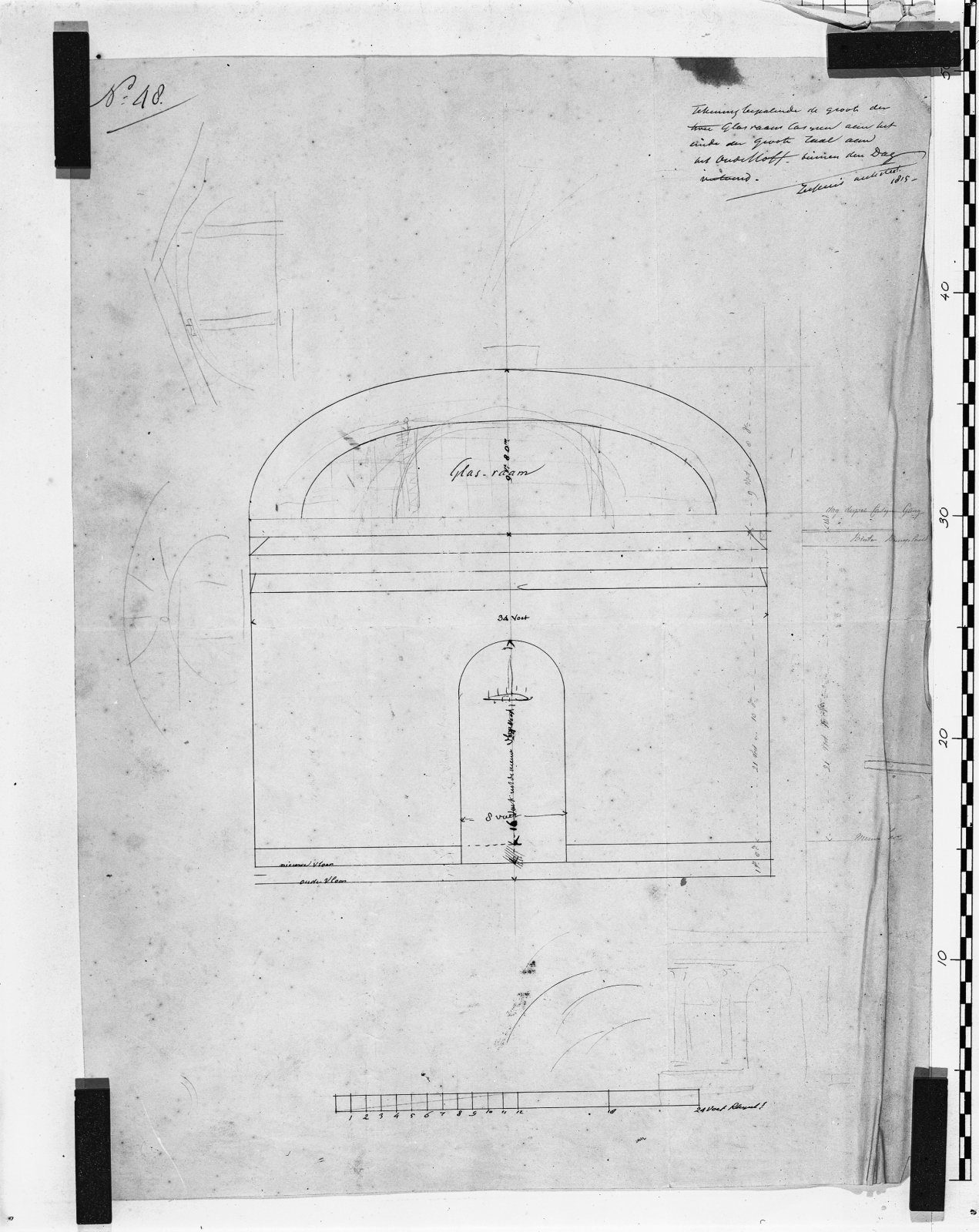 tekening maatvoering glasramen grote zaal no.48 Zies...
